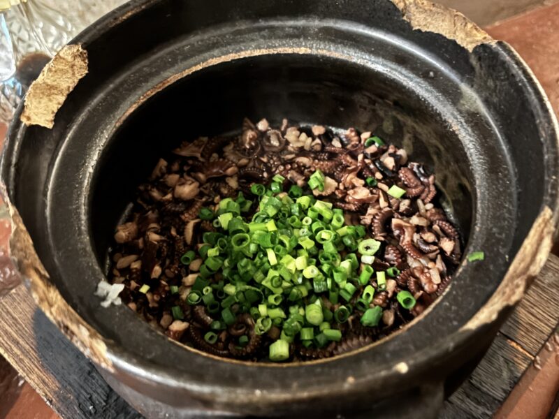 最後は土鍋ご飯。種類が多く、迷った末にタコ飯を注文。