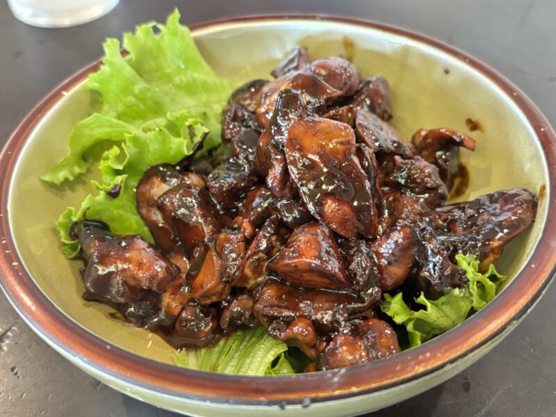 合わせて頼んだ「鳥もつ」も想像以上のボリュームで、甘辛い味付けがお酒に合いそうな一品でした。