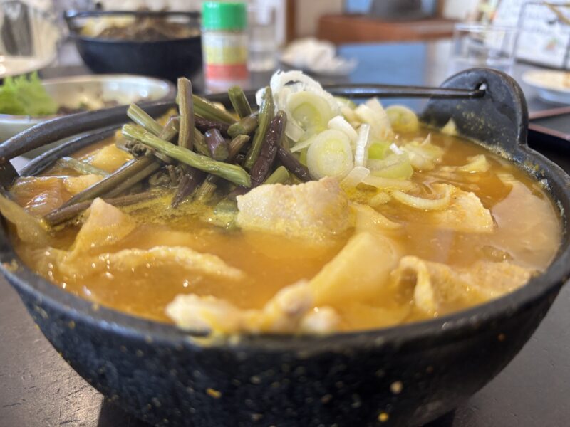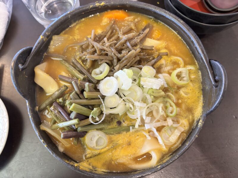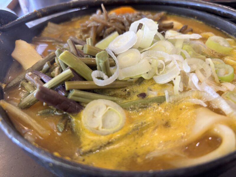土鍋いっぱいに入っていて、麺も野菜もボリューム満点。食べきるのがやっとの量でした。